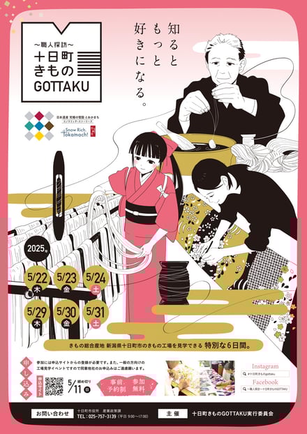 大好評をいただき、6回目を迎える工場見学イベント『~職人探訪~十日町きものGOTTAKU』を、今年は5月22日(木)~5月24日(土)、5月29日(木)~5月31日(土)にかけて開催します。
